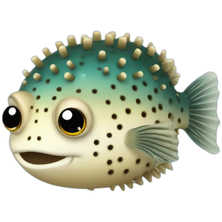 A pufferfish puffs up, turning into a spiky ball as it floats through the water, ready for anything emoji