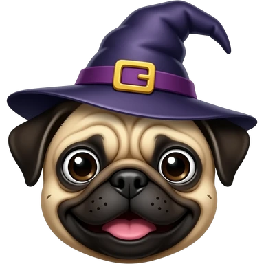 Pug looking like a witch doing a witch smile emoji