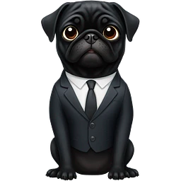 A dog (pug) with a crown in a white suit and a red bow and black braces emoji