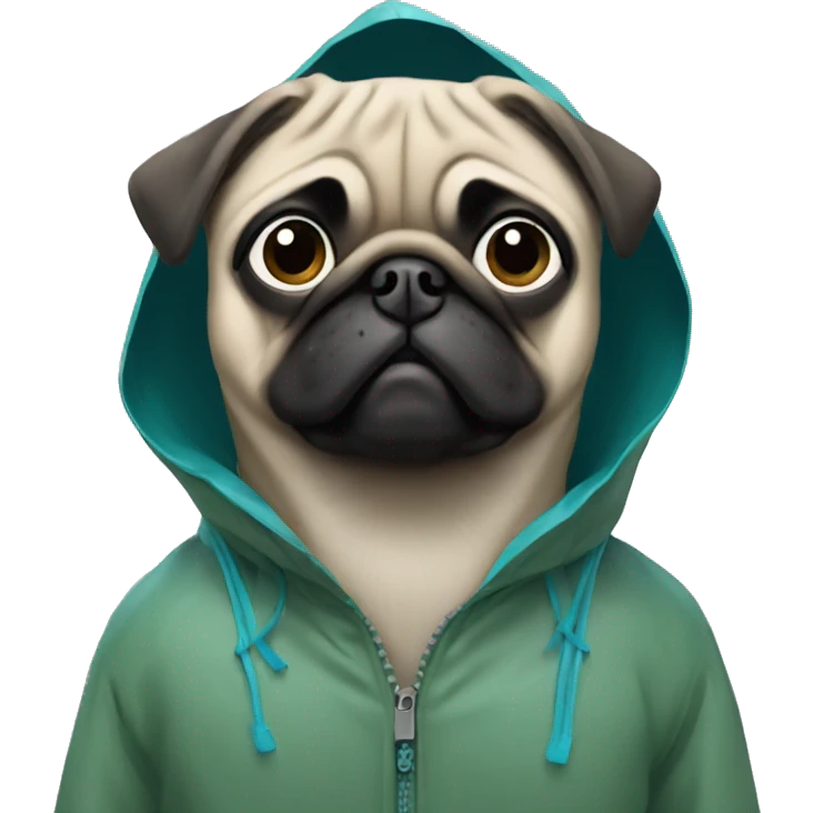 Pug wearing a rain jacket emoji | AI Emoji Generator