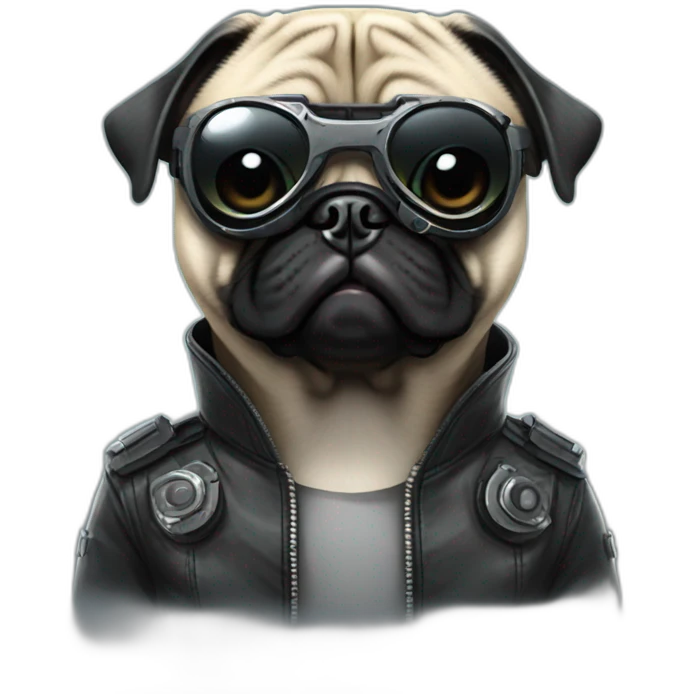 pug with black sunglasses and wearing a cyberpunk suit emoji | AI Emoji Generator