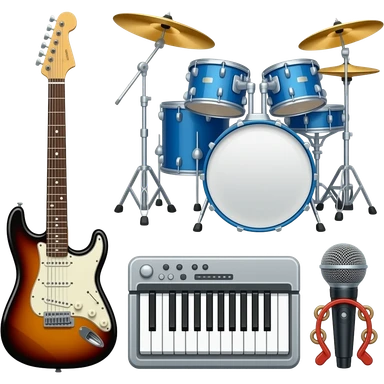 Guitar (electric), drums (drums in my cymbal), cymbal, keyboard, tambourine, and microphone emoji
