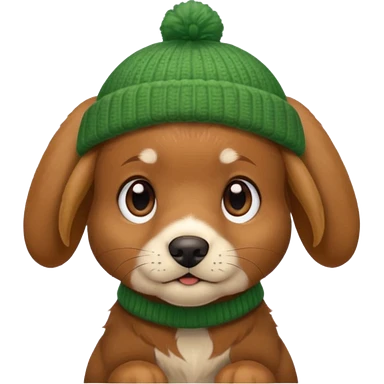 Dog in Green Beanie – brown puppy with floppy ears and cozy beanie. emoji