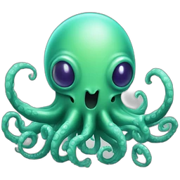 Pulpo animado enorme color azul ojos grandes en el mar emoji