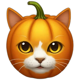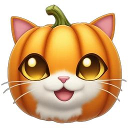 blue sphynx halloween cat with a pumpkin full of candies emoji