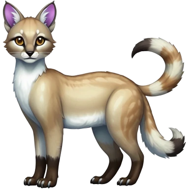 Colorful dark tropical pastel-lilac-lavender-violet pastel white glorious divine exotic cute cool beautiful shiny beautiful fantasy-caracal-civet-genet-sergal-vernid-Gryphon-Cacomistle-Trico-oncilla-animal-Fakémon-hybrid-fursona (full body) emoji