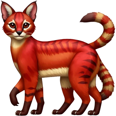 Vibrant-colored red-dark-brownish-furred colorful painted marked patterned Asian glorious divine exotic cute cool beautiful shiny beautiful fantasy-caracal-civet-genet-sergal-vernid-Cacomistle-oncilla-animal-Fakémon-hybrid-fursona (full body) emoji