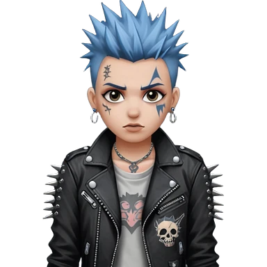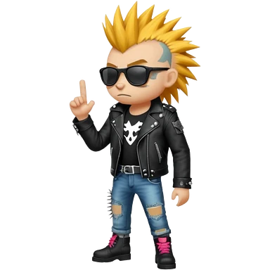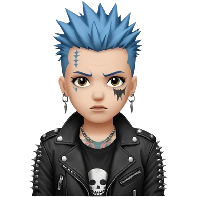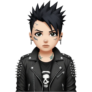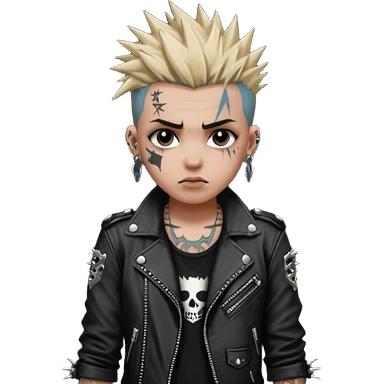 A dark skinned curly haired punk guy with urban camo pants and tactical boots and wearing a Leather jacket emoji