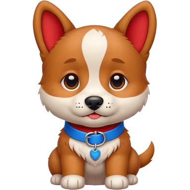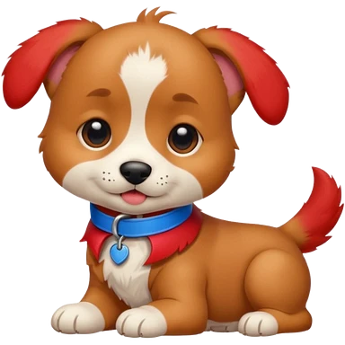 black dog with white patch, big jowls, sad puppy eyes, angel wings, red collar emoji