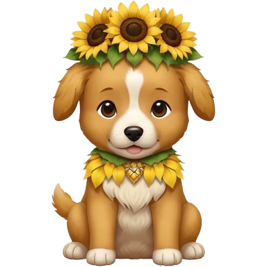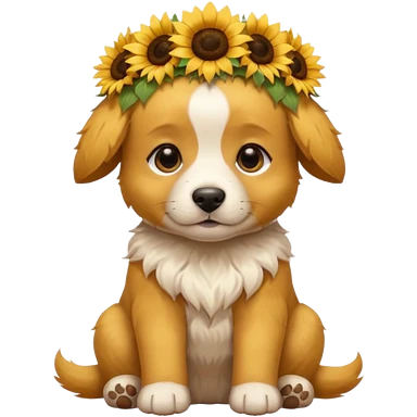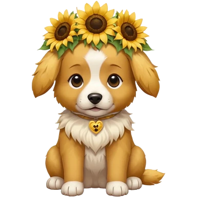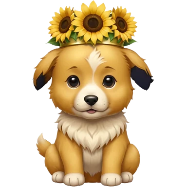 puppy sitting and with sunflower crown emoji