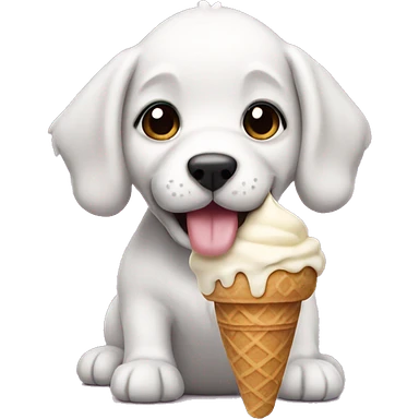 Puppy Yorkie white fur brown around eyes eating ice cream emoji