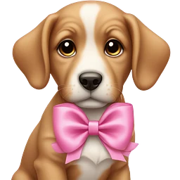 A white Shih-Poo puppy in a chibi style with big eyes and a cute smile, with pink hearts around her. emoji