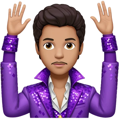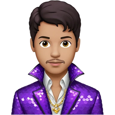 Prince Rogers Nelson with olive skin, black hair, purple outfit emoji