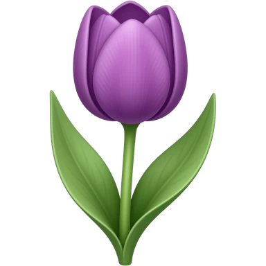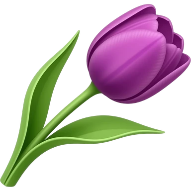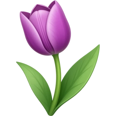 purple tulip with slightly tilted bud, with stem and two leaves, in slack emoji style emoji