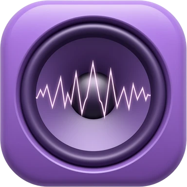 purple speaker on the side with musical waves emoji