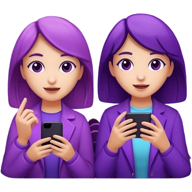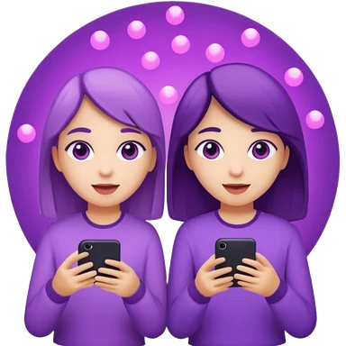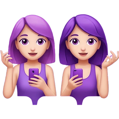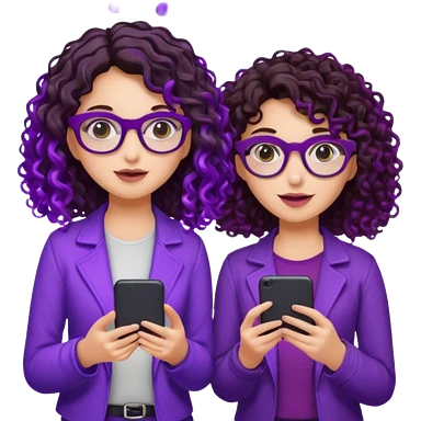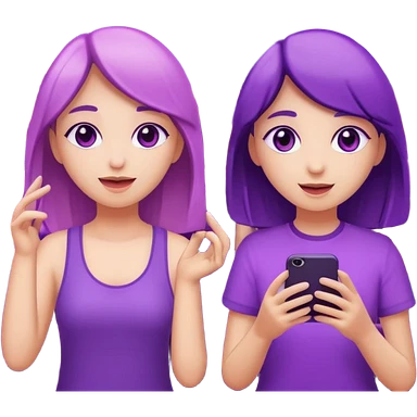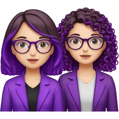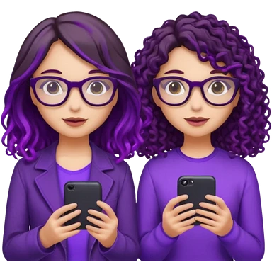 You can create two girls enjoying a concert, one brunette with purple highlights straight hair , the other brunette with curly hair and glasses. With purple lights around them. emoji