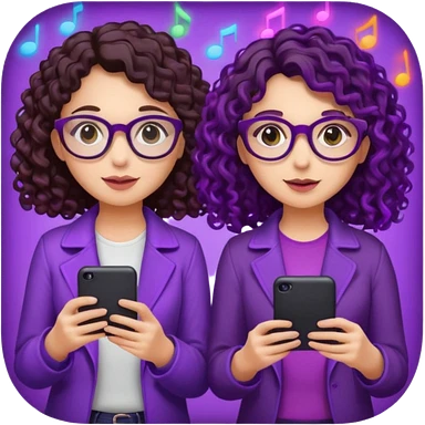 You can create two girls enjoying a concert, one brunette with purple highlights, the other brunette with curly hair and glasses. With purple lights around them. emoji