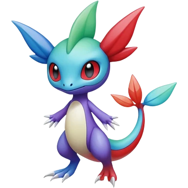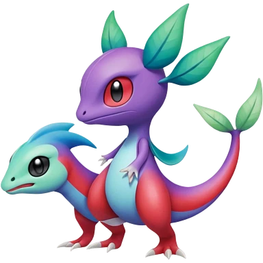 Purple-red-blue-white-gradients Meloetta-Larvitar-Axew-Grovyle-Pokémon-Fakémon-hybrid-fusion-creature emoji