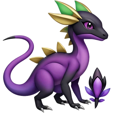 purple-black-gold-gradients Meloetta-Larvitar-Axew-Salandit-Pokémon-Fakémon-creature-hybrid-fusion emoji