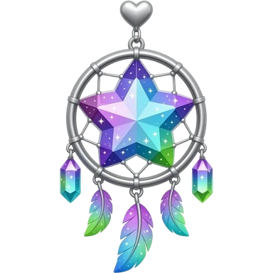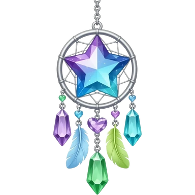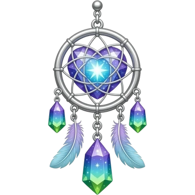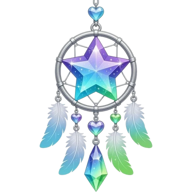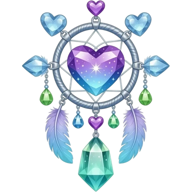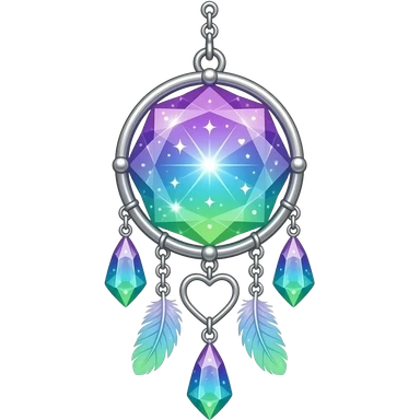 Purple-Blue-cyan-lime-green-gradients and silver cold-cool-colored romantic lush beautiful pretty hanging crystal-catcher aesthetic with hearts and sparkles and feathers emoji | AI Emoji Generator