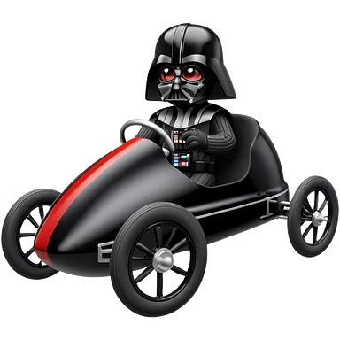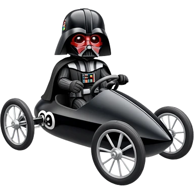 Baby Darth Vader’s plush and refined streamlined two cylinder futuristic racing cyclekart with advanced rugged suspension and steering emoji