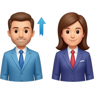Simple emoji-style icon of two business people with ties connected by up and down arrows, minimal, flat, blue-to-purple gradient, clean and modern. emoji