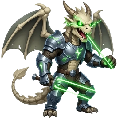 Electricity power dragon with bones powerful lighting eyes blade laser in a dungeon emoji