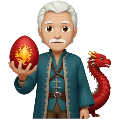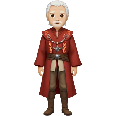 purple eyed white haired old man standing in Targaryen themed clothes, full body emoji | AI Emoji Generator
