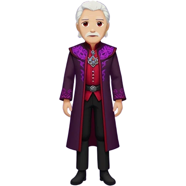 a white haired old man with purple eyes standing, full body, in Targaryen themed clothes emoji