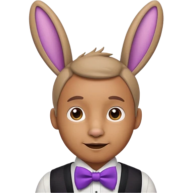 Anime, girl, light blue hair, purple eyes, white coat, bowtie, white top hat with bunny ears false, white bunnysuit, round lenses glasses emoji