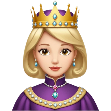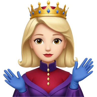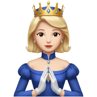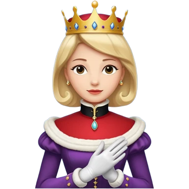 A dignified queen with high collar gown, gloved hands, and classic royal grace. emoji