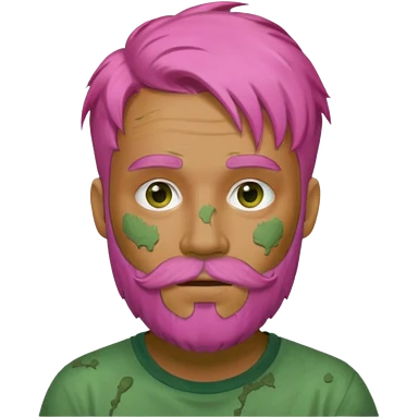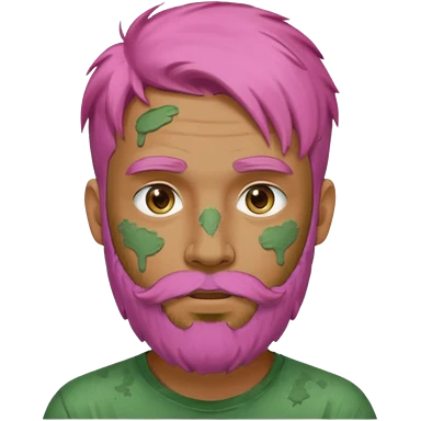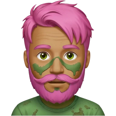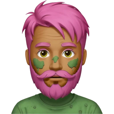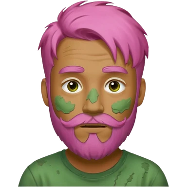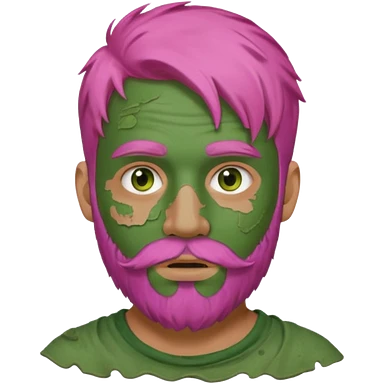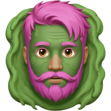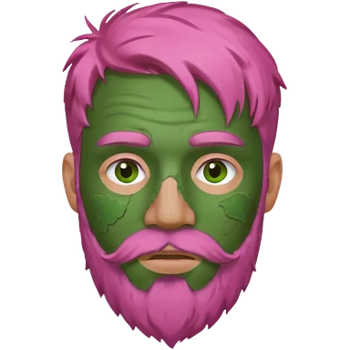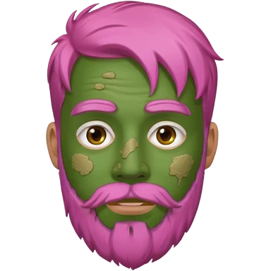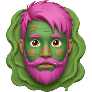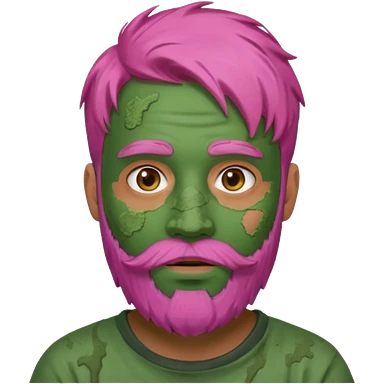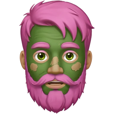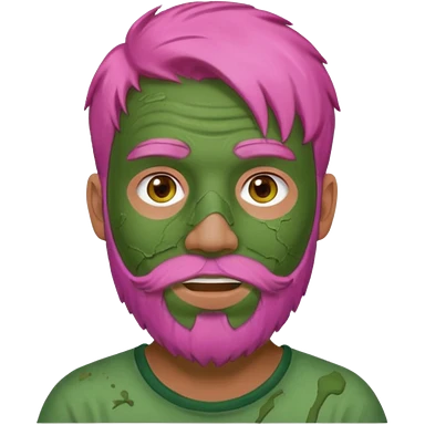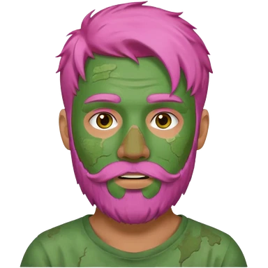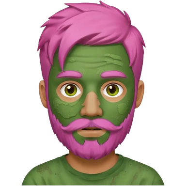 pink haired man with full full face dirty messy green clay mask and beard emoji