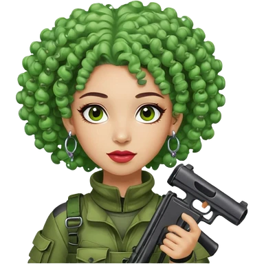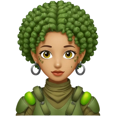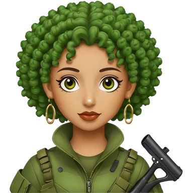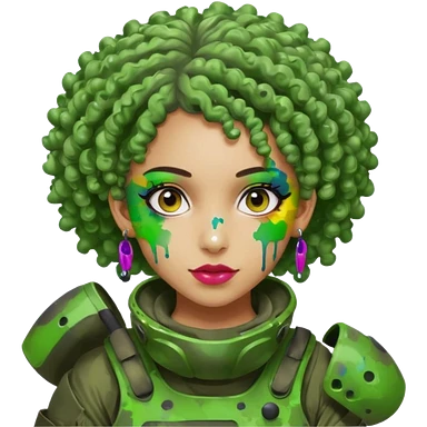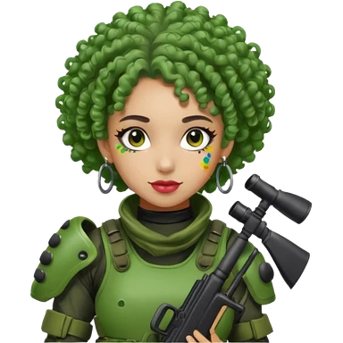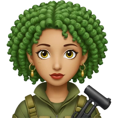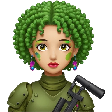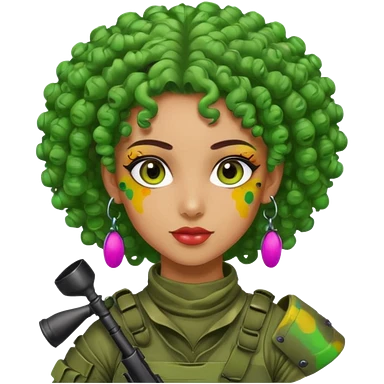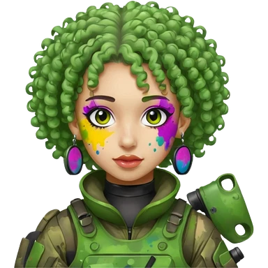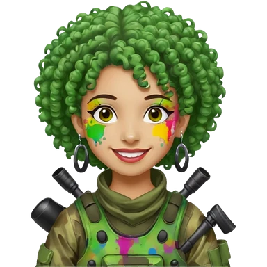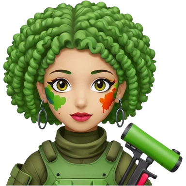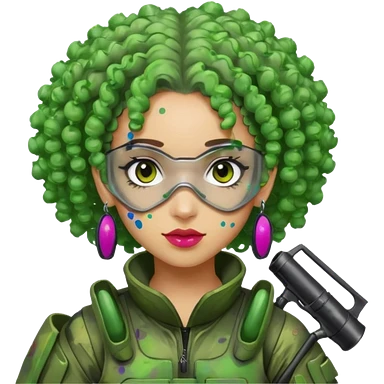 green curly haired painitball player with big earrings emoji