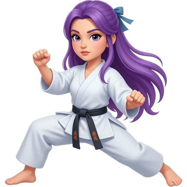 Girl with white martial arts tunic and purple martial arts belt emoji