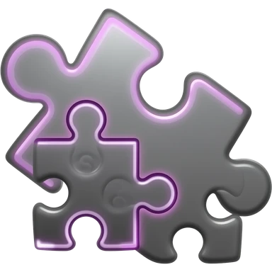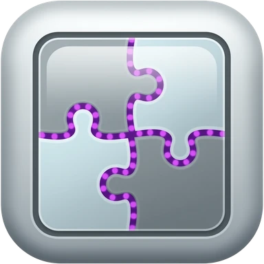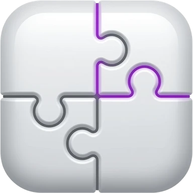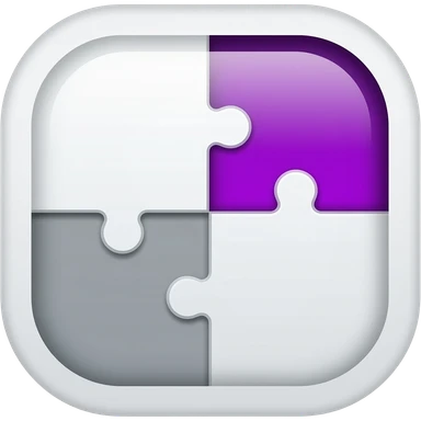 Minimalist iOS-style emoji of a 4-piece puzzle, clean and smooth design, one piece highlighted in glowing purple dotted , soft gradients, glossy finish, centered composition, neutral background emoji