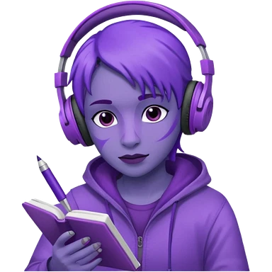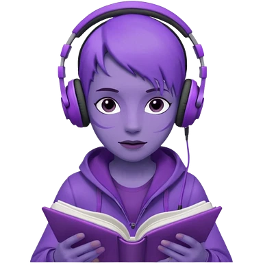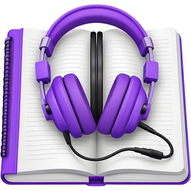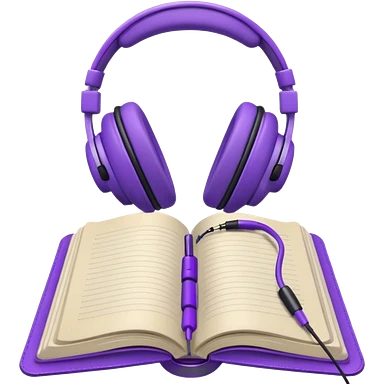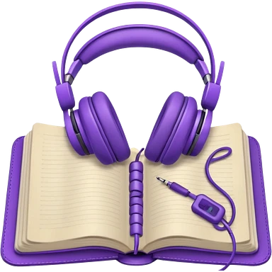 purple open journal with purple headphones on top emoji | AI Emoji Generator