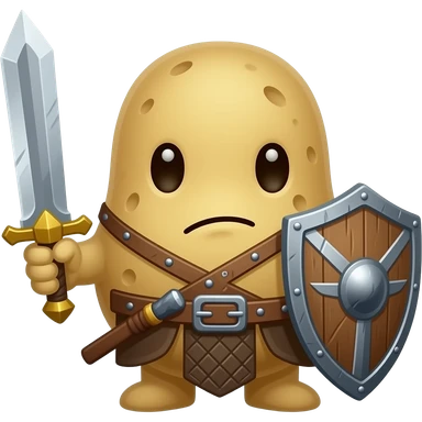 A potato warrior assassin character with a sword and sheild emoji