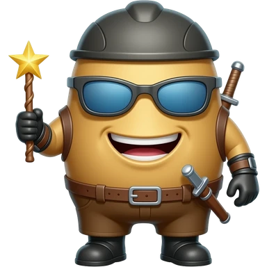 A potato asassin character with a wand emoji