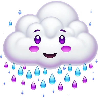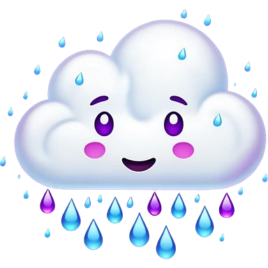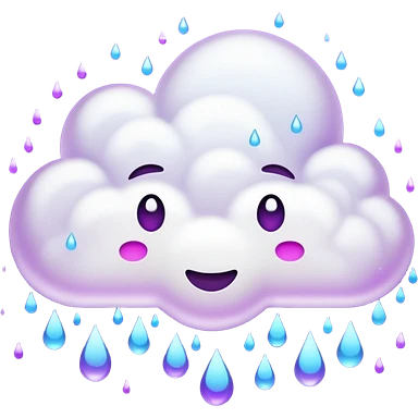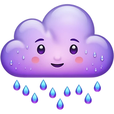 purple cloud with blue rain emoji