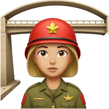Female soldier covering under a bridge, with shelling happening all around emoji