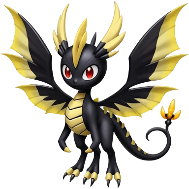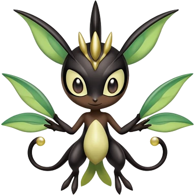 Shiny glossy melanistic oily Meloetta-Celebi-Giratina-Noibat-Pokémon-Fakémon-fusion-hybrid-creature emoji