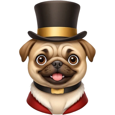 A pug with 100 top hats emoji