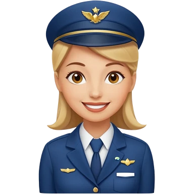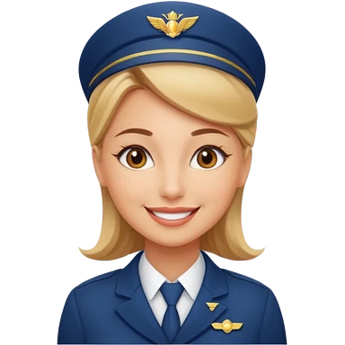 Female flight attendant, with red scarf, white shirt, long brown hair, brown eyes, iOS emoji-type face, fair skin, emoji