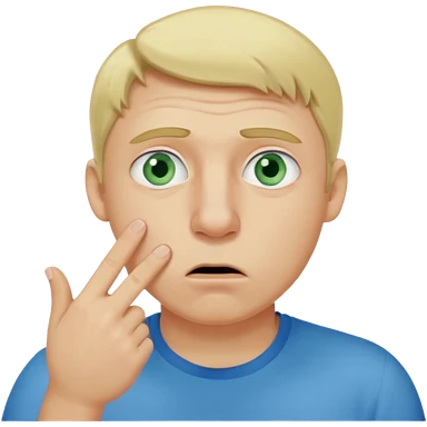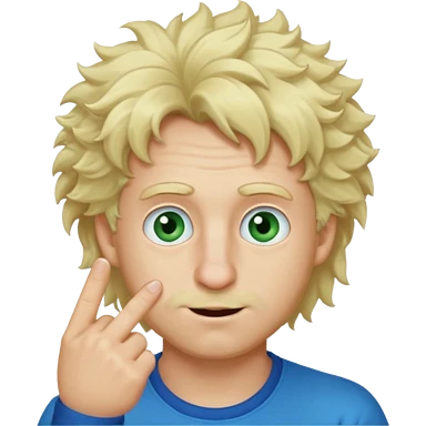 a emoji with two fingers in his nose, make him have a natural white skincolour and blonde hair, blue/green eyes, put the fingers in his nose, its a man and he needs two fingers IN his nose, make him have fluffy blonde hair, and its still not in his nose emoji