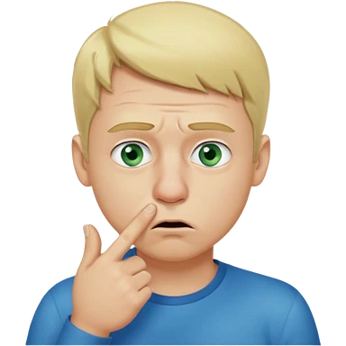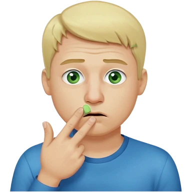 a emoji with two fingers in his nose, make him have a natural white skincolour and blonde hair, blue/green eyes, put the fingers in his nose emoji