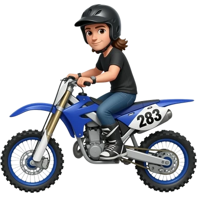 Guy on royal blue dirtbike with brown hair mullet and put 283 on the bike and make him have a dirtbike helmet on emoji