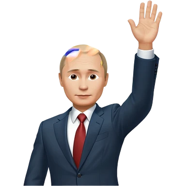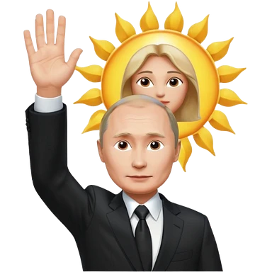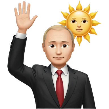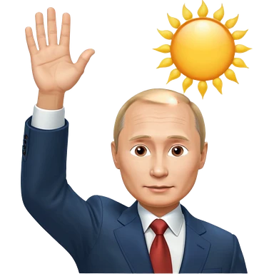 Putin stands with his right hand raised towards the sun emoji