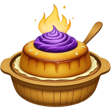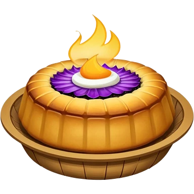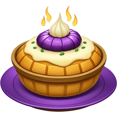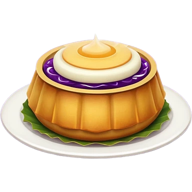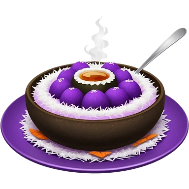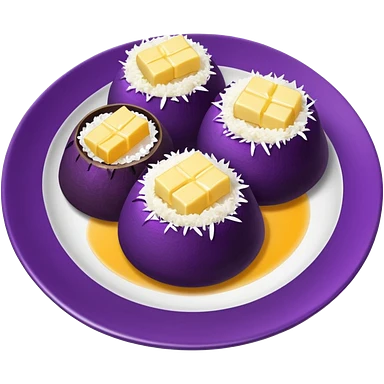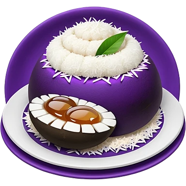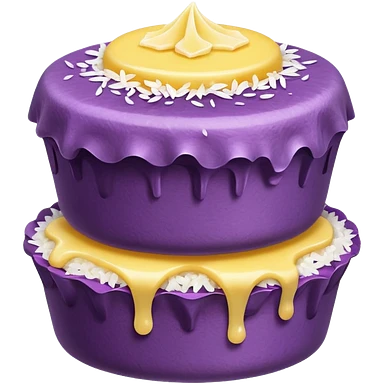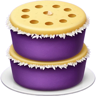 Create an emoji-style illustration of puto bumbong. Purple steamed rice cakes stacked together, topped with butter, grated coconut, and brown sugar. Cute, clean, iOS-style emoji look emoji