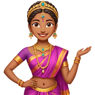 realistic bharathanatyam dancer with a smiling face and beautiful pose emoji