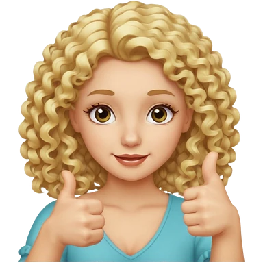 blond girl doing thumbs up sign sassy make it with curly hair and lashes emoji